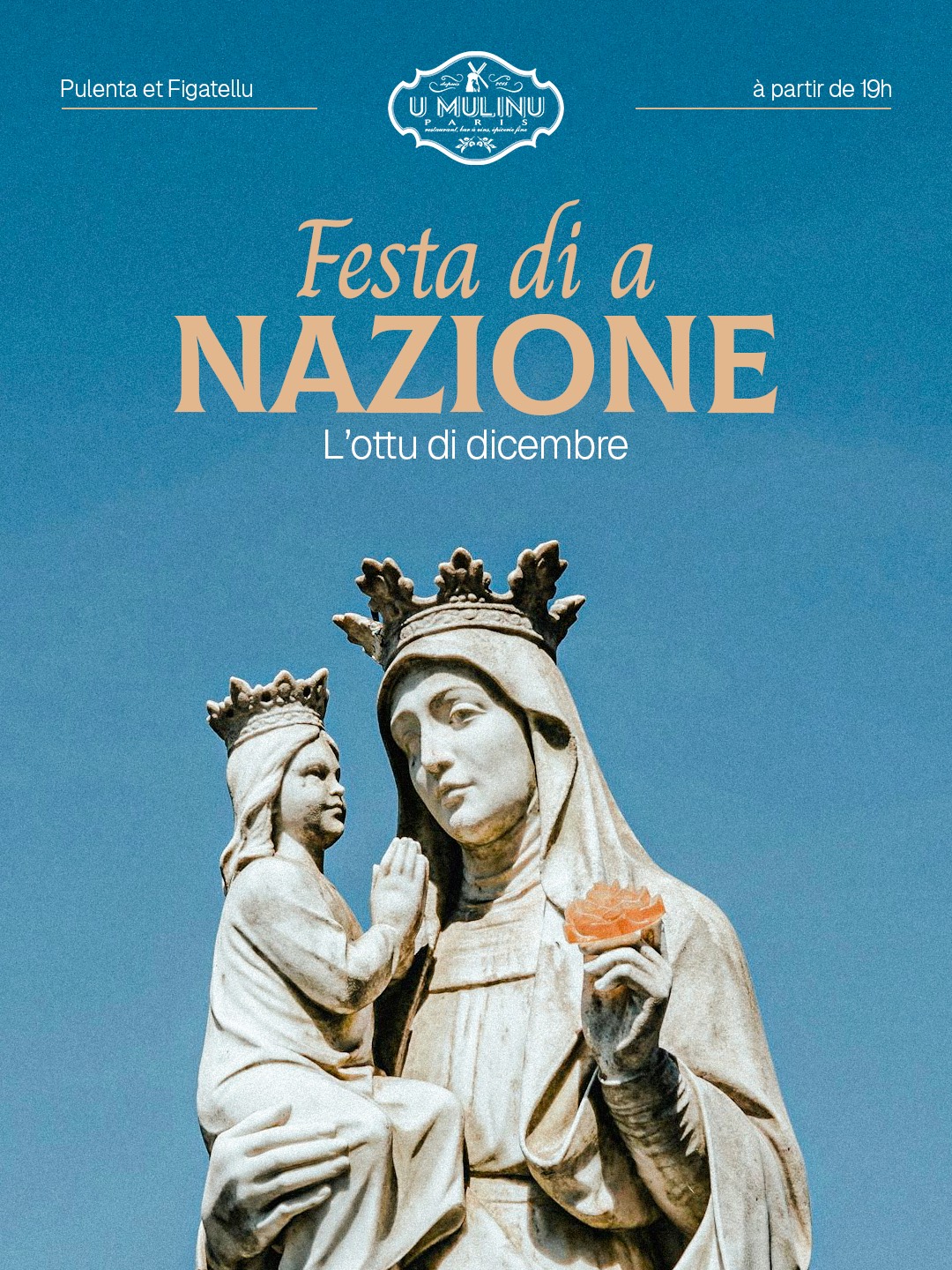 Venez célébrer avec nous A Festa di a Nazione le 8 décembre. Ce jour de l’Immaculée Conception ayant été choisi en 1735 comme fête nationale de la Corse se plaçant ainsi sous la protection de la Vierge Marie.